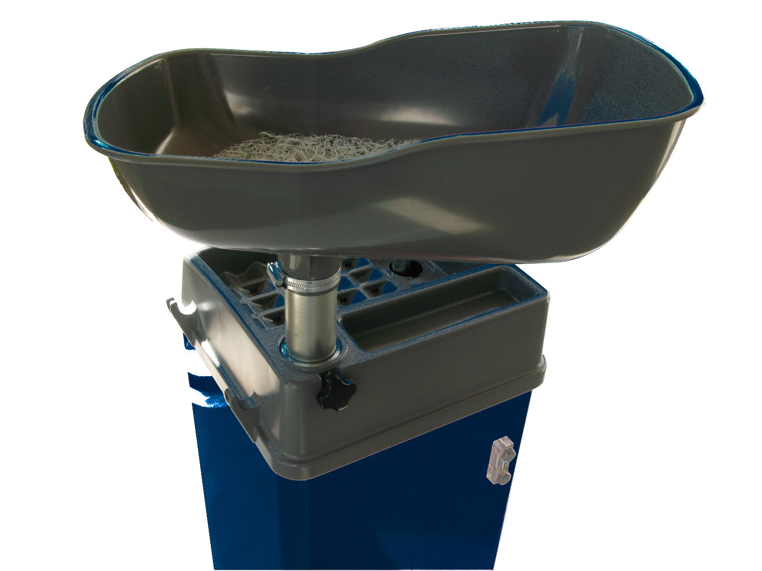 ドレンプラグより廃油を受ける。汚れの激しいエンジンオイルを残さず回収。