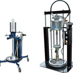 高粘度用ポンプは、中・高粘度の5,000~300,000mPa・sの材料の汲出・移送に適し、グリースをはじめ、接着剤やコーキング剤・シーリング材・パテ・高粘度インキなど、様々な高粘度材料を搬送できます。リフト付きのポンプユニットとなっており(HPP110A05を除く)、据え付けの手間も少なく、ドラム缶またはペール缶をセッティングし、供給エアと吐出側のホースを接続するだけですぐに使用できます。